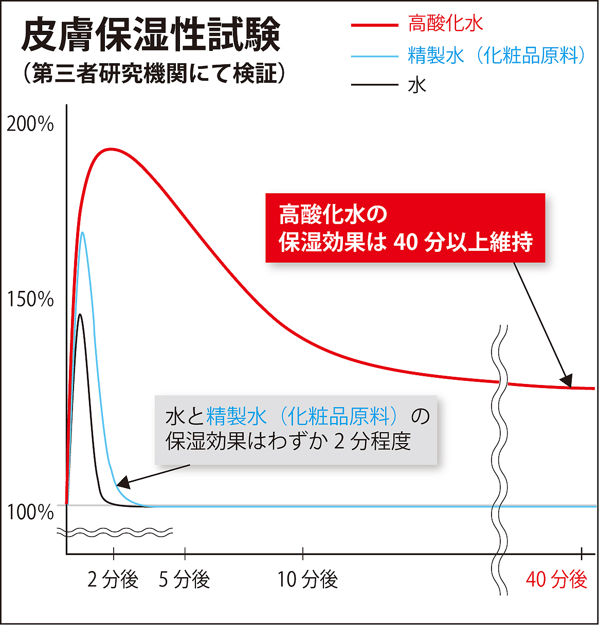 長時間肌水分量が保持されることを確認しております。