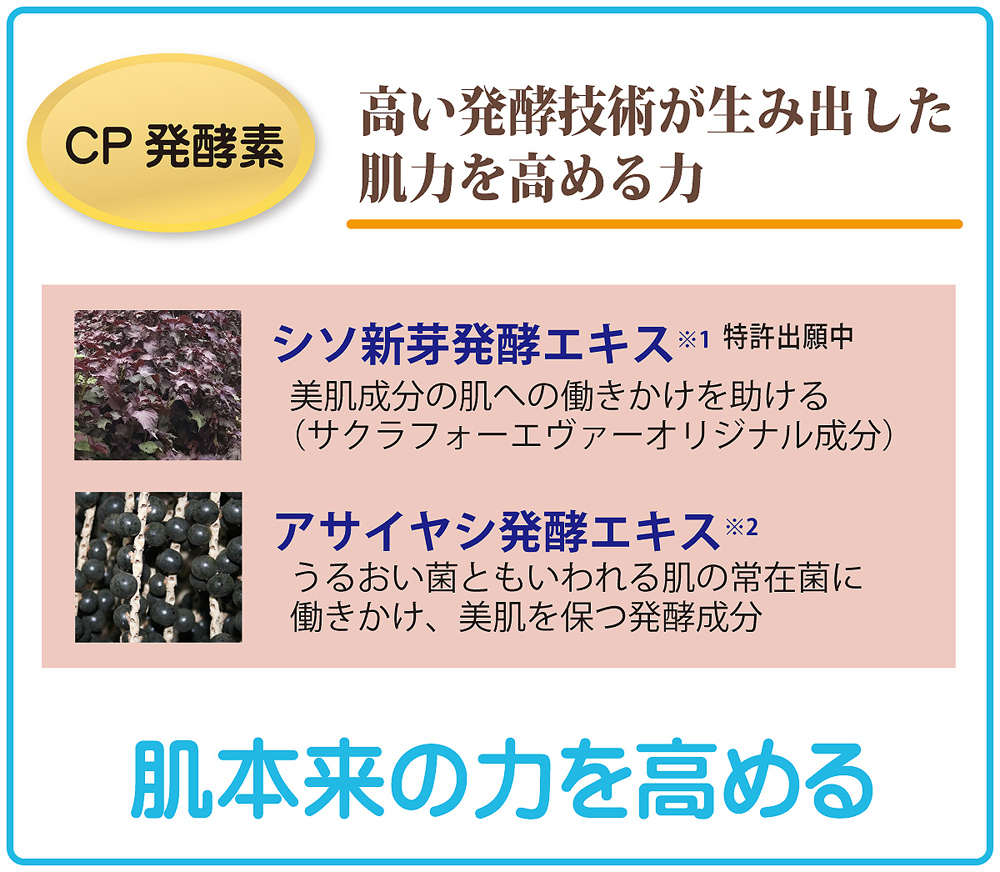 さらに発酵技術の最先端!CP発酵素の働きにより、肌表面のうるおい菌を保ち健全で清潔なお肌を保ってくれるクリームです。